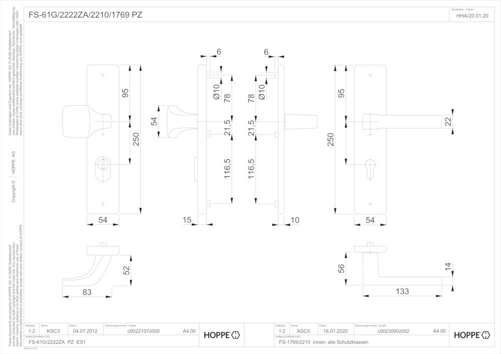 HOPPE Sicherheits-Wechselgarnitur Austin FS-61G/2222ZA/2210/1769,LS eck.,15mm,ES1,ZA/PZ 72/9,F1,TS 42-47