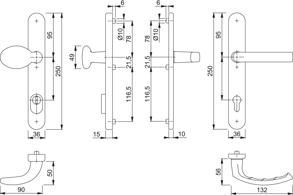 Form Türgriff (außen): gekröpft