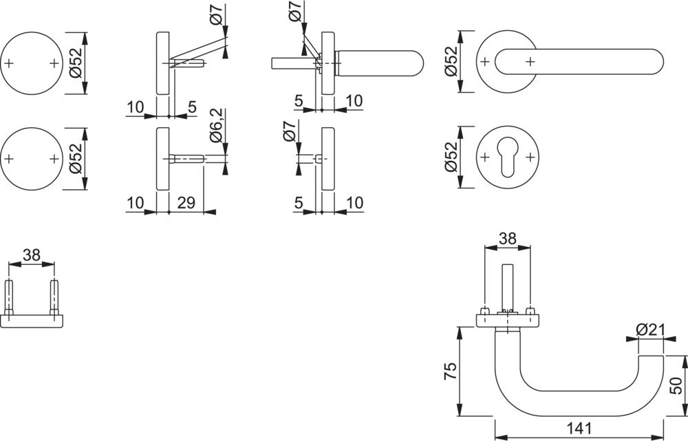 | Durchmesser Türgriff (innen): | 21.00 MMT |