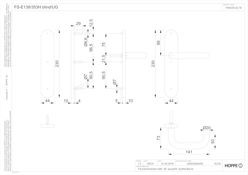 Produktinformationen "HOPPE Standflügelgarnitur Paris FS-E138/353H, LS,BL/UG/9,F69,TS 40-65"
