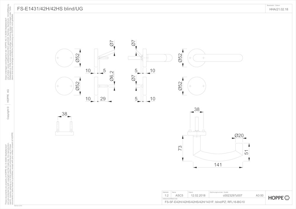 Produktinformationen "HOPPE Standflügelgarnitur Trondheim FS-E1431/42H/42HS,BL/UG,9,F69,TS 40-65"