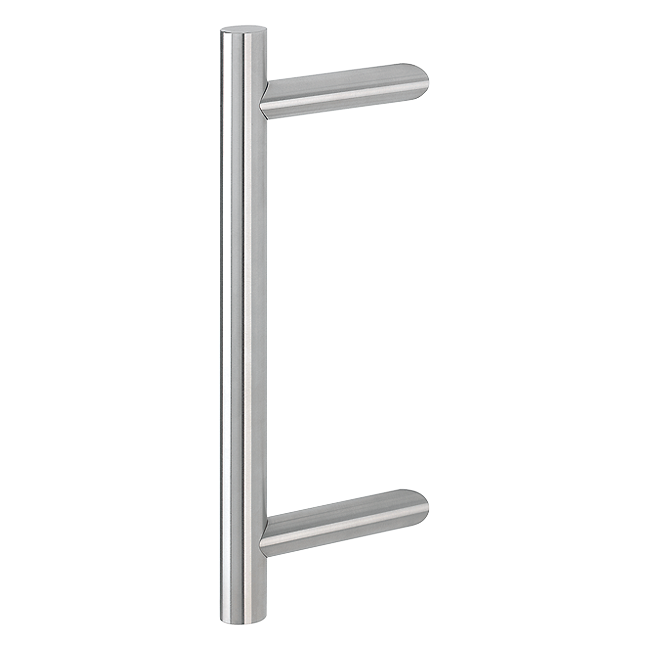 Der Hoppe E5012 Stoßgriff wurde aus rostfreiem Edelstahl gefertigt. Der Stoßgriff für Haus-/Wohnungseingangstüren hat eine Stangenform und die runden Stützen sind in einem schrägem Winkel von 45° angeordnet.