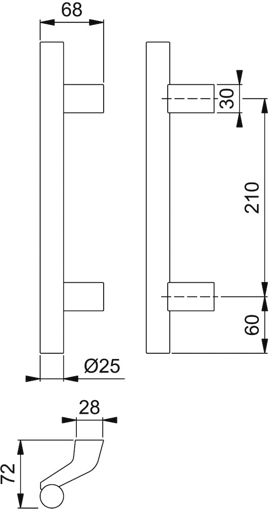 HOPPE®, Haustür-Stoßgriff, Ausführung: gerade, Modellnummer: 5004, Befestigungsabstand: 210mm, Griffdicke: 25mm, Griffhöhe: 72mm, Grifflänge: 330mm, Griffbreite: 68mm, Material: Aluminium, Farbton: stahlfarbig matt, Oberfläche: eloxiert,Durchmesser Stütze : 30mm, Befestigungsart: verdeckt verschraubt, DIN-Richtung: DIN Links-Rechts, Stütze: gekröpft, Form: rund, Türflügelanzahl: einflügelig, zweiflügelig, Türwerkstoff: Holz, Stahl