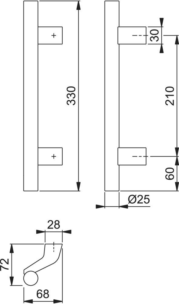 Produktinformationen "HOPPE Stoßgriff 5004,Befestigungsabstand 210,Länge 330,Durchmesser 25,F1"