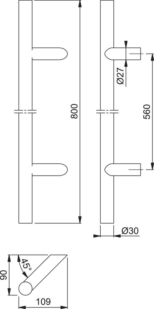Produktinformationen "HOPPE Stoßgriff E5012,Befestigungsabstand 560,Länge 800,Durchmesser 30,F9714M"