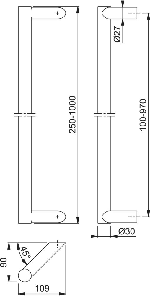 Produktinformationen "HOPPE Stoßgriff E5012 XL,Befestigungsabstand 100-970,Länge 250-1.000,Durchmesser 30,F69"