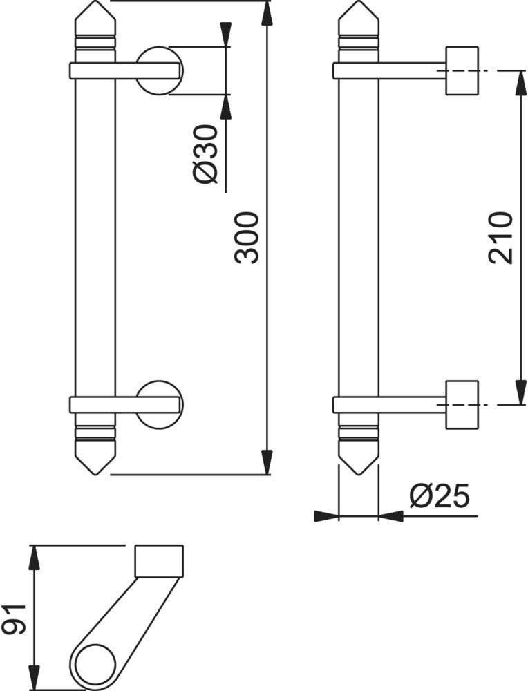 Stoßgriff E5019AD; Produkttyp: Stoßgriff; Produkttyp (Hersteller): Bügelgriff; Form: gerade; Befestigungsart: verdeckt verschraubt; Einsatzbereich: Haustür,Objekttür; Material: Edelstahl; Türwerkstoff: Kunststoff,Aluminium,Holz; DIN-Richtung: DIN Links-Rechts; Befestigungsabstand: 210 mm; Länge: 300 mm; Durchmesser: 25 mm; Höhe: 91 mm; Ausführung Stütze: schräg; Farbe: grau; Farbton: edelstahl matt