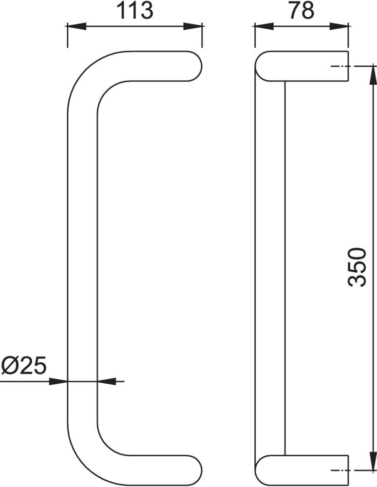 Stoßgriff E5100; Produkttyp: Stoßgriff; Produkttyp (Hersteller): Bügelgriff; Breite: 113 mm; Form: U-Form,gekröpft; Befestigungsart: verdeckt verschraubt; Einsatzbereich: Haustür,Objekttür; Material: Edelstahl; Türwerkstoff: Holz,Aluminium,Kunststoff; DIN-Richtung: DIN Links-Rechts; Befestigungsabstand: 350 mm; Länge: 375 mm; Durchmesser: 25 mm; Höhe: 78 mm; Farbe: grau; Farbton: edelstahl matt