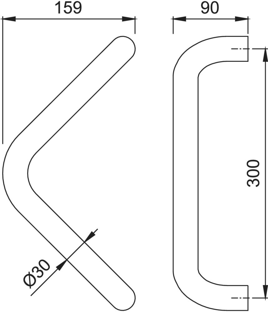 Stoßgriff E5210; Produkttyp: Stoßgriff; Produkttyp (Hersteller): Bügelgriff; Breite: 159 mm; Form: Dreieck; Befestigungsart: verdeckt verschraubt; Einsatzbereich: Objekttür,Haustür; Material: Edelstahl; Türwerkstoff: Kunststoff,Aluminium,Holz; DIN-Richtung: DIN Links-Rechts; Befestigungsabstand: 300 mm; Länge: 330 mm; Durchmesser: 30 mm; Höhe: 90 mm; Farbe: grau; Farbton: edelstahl matt; Oberfläche: matt