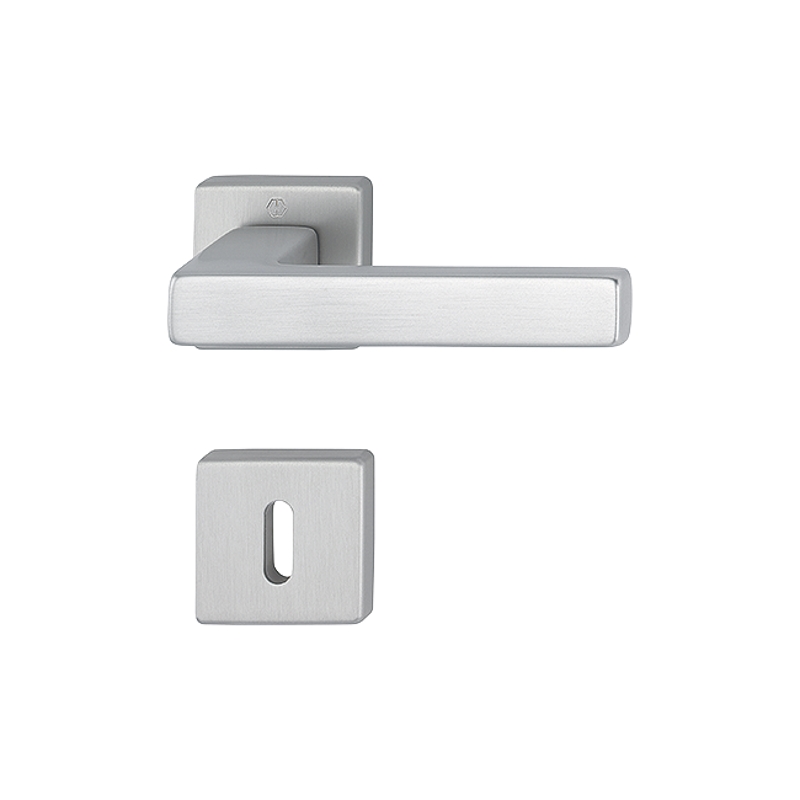 Dieser Türgriff für Innentüren wurde aus Aluminium und mit eckigen Rosetten gefertigt. Die Rückholfedern können sowohl rechts wie auch links verwendet werden und durch den Hoppe-Schnellstift Vierkantstift ist eine problemlose Montage gewährleistet. Die Garnitur kann für Türstärken von 37 - 42 mm verwendet werden und der integrierte Vierkantstift ist 8 mm dick. Zusätzlich liegt eine Hülse auf 8,5 mm bei. Somit entspricht diese Garnitur auch der österreichischen Normen.