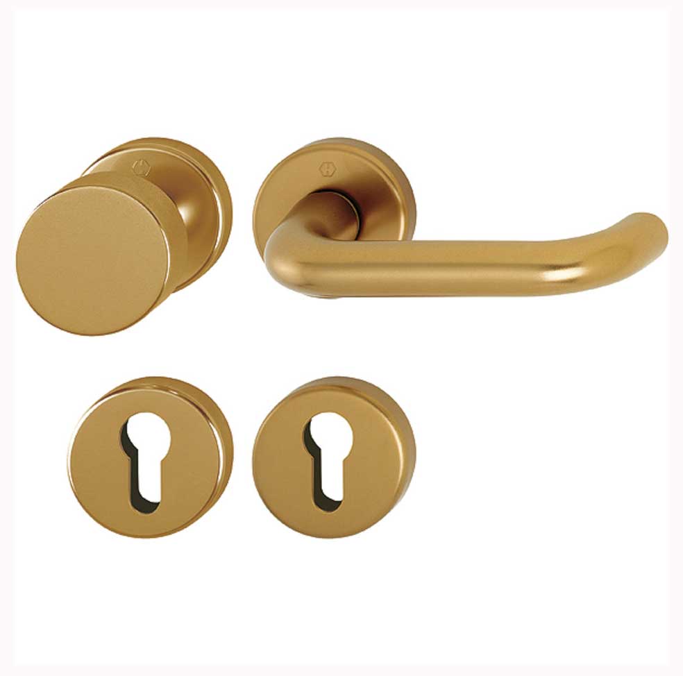 • Lagerung: außen Knopf fest, innen Türgriff lose, Rückholfeder rechts/links verwendbar, wartungsfreies Gleitlager