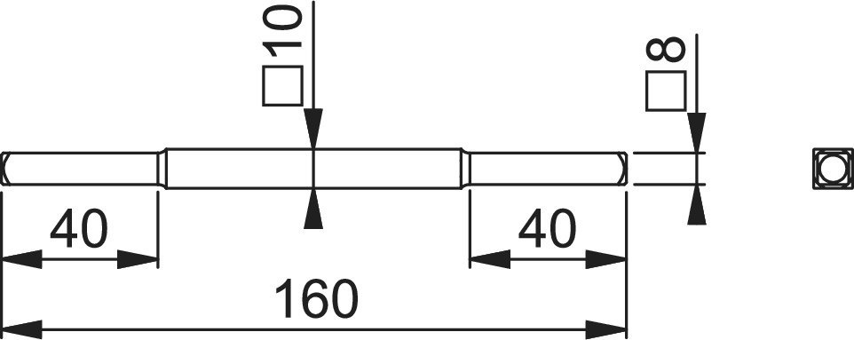 Vierkantstift STI-VLL-B-RDC; Produkttyp: Vierkantstift; Produkttyp (Hersteller): Vollvierkantstift; Ausführung: abgesetzt; Material: Stahl; Oberfläche: verzinkt; Einsatzbereich: Türdrücker; Vierkant: 8/10/8 mm; Länge: 160 mm