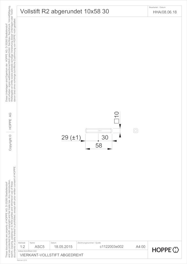 Produktinformationen "HOPPE Vierkantstift R2, 10x58mm verzinkt"