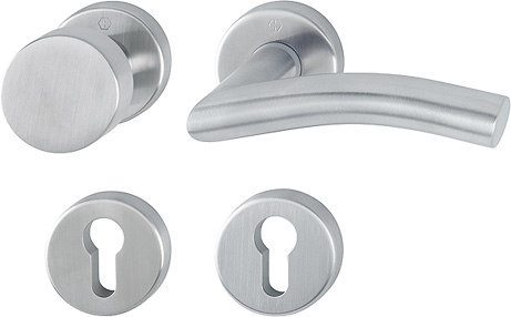 Wechselgarnitur Antwerpen E58/42KV/42KVS/1420Z; Produkttyp: Wechselgarnitur; Produkttyp (Hersteller): Wechselgarnitur; Ausführung: Rosette; Befestigungsart Drückerrosette (außen): verdeckt verschraubt; Befestigungsart Drückerrosette (innen): verdeckt verschraubt; Befestigungsart Schlüsselrosette (außen): verdeckt verschraubt; Befestigungsart Schlüsselrosette (innen): verdeckt verschraubt; Befestigungstechnik: mit Stütznocken; Montageart: aufliegend; Form Drückerrosette: rund; Form Schlüsselrosette (außen): rund; Form Schlüsselrosette (innen): rund; Vierkant: 8 mm; Material: Edelstahl; Form Türgriff (innen): gebogen; Form Türgriff (außen): Flachknopf; Ausführung Türgriff (außen): fest; Gewinde Knopf/Griffplatte: M12; Durchmesser Türgriff (innen): 20 mm; Durchmesser Türgriff (außen): 50 mm; Durchmesser Schlüsselrosette: 52 mm; Länge Türgriff (innen): 124 mm; Höhe Türgriff (innen): 59 mm; Höhe Türgriff (außen): 40 mm; Durchmesser Drückerrosette (außen): 52 mm; Durchmesser Drückerrosette (innen): 52 mm; Höhe Drückerrosette (außen): 8 mm; Höhe Drückerrosette (innen): 8 mm; Höhe Schlüsselrosette (außen): 8 mm; Höhe Schlüsselrosette (innen): 8 mm; Lagerung: mit Rückholfeder,wartungsfreies Gleitlager; Einsatzbereich: Haustür; Türart: Vollblatt; Türwerkstoff: Stahl,Holz; Lochung: Profilzylinder gelocht; DIN-Richtung: DIN Links; Farbe: grau; Farbton: edelstahl matt; Ausführung Vierkant: Rollenwechselstift; Türstärke: 42 mm; Türstärke min.: 37 mm; Türstärke max.: 42 mm