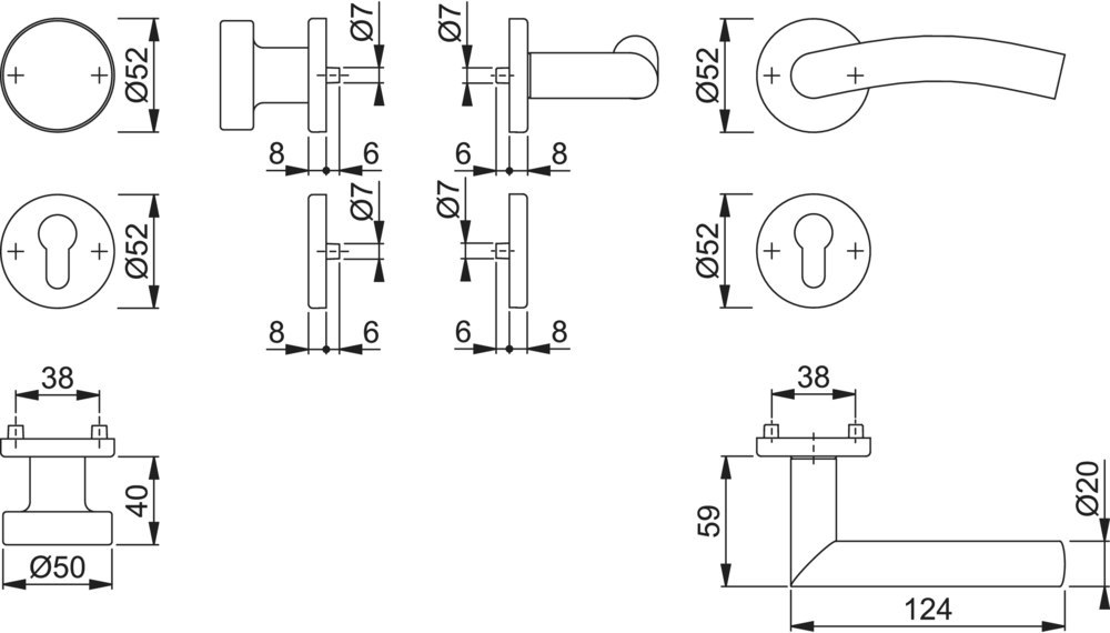 Höhe Schlüsselrosette (außen): 8.00 MMT
