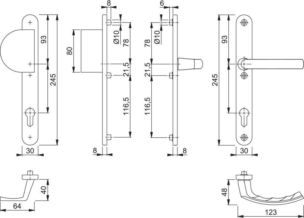 Wechselgarnitur Lima 554/3346/1962; Produkttyp: Wechselgarnitur; Produkttyp (Hersteller): Wechselgarnitur; Ausführung: Langschild; Befestigungsart: innen sichtbar verschraubt; Befestigungstechnik: mit Stütznocken; Form: oval; Vierkant: 8 mm; Material: Aluminium; Material Unterkonstruktion: Edelstahl; Form Türgriff (innen): gebogen; Form Türgriff (außen): Griffplatte,gebogen; Ausführung Türgriff (außen): fest; Breite Türgriff (außen): 64 mm; Länge Türgriff (innen): 123 mm; Länge Türgriff (außen): 80 mm; Höhe Türgriff (innen): 48 mm; Höhe Türgriff (außen): 40 mm; Schildbreite außen: 30 mm; Schildbreite innen: 30 mm; Schildlänge außen: 245 mm; Schildlänge innen: 245 mm; Schildstärke außen: 8 mm; Schildstärke innen: 8 mm; Lagerung: wartungsfreies Gleitlager,festdrehbar; Einsatzbereich: Haustür; Türart: Rohrrahmen; Türwerkstoff: Aluminium,Kunststoff; Lochung: Profilzylinder gelocht; Entfernung: 92 mm; DIN-Richtung: DIN Links-Rechts; Farbe: weiß; Farbton: verkehrsweiß; Oberfläche: beschichtet; Ausführung Vierkant: Vierkantstift; Türstärke min.: 57 mm; Türstärke max.: 62 mm