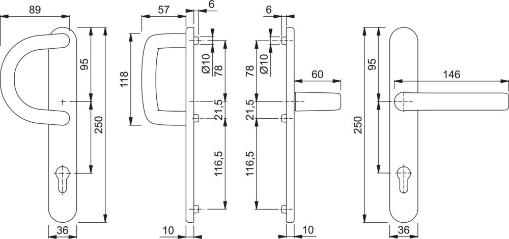 | Form Türgriff (außen): | Stoßgriff, gebogen |