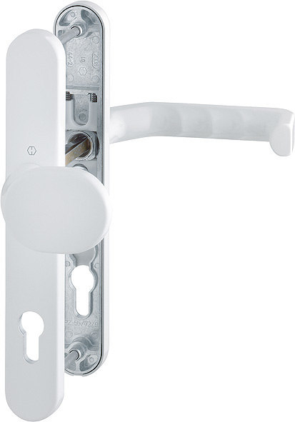 Wechselgarnitur Liverpool 86G/3357N/1313G; Produkttyp: Wechselgarnitur; Produkttyp (Hersteller): Wechselgarnitur; Ausführung: Langschild; Befestigungsart: verdeckt verschraubt; Befestigungstechnik: mit Stütznocken; Form: oval; Vierkant: 8 mm; Material: Aluminium; Material Unterkonstruktion: Zamak; Form Türgriff (innen): gekröpft; Form Türgriff (außen): gekröpft; Ausführung Türgriff (außen): fest; Gewinde Knopf/Griffplatte: M12; Breite Türgriff (außen): 87 mm; Länge Türgriff (innen): 146 mm; Länge Türgriff (außen): 54 mm; Höhe Türgriff (innen): 60 mm; Höhe Türgriff (außen): 50 mm; Schildbreite außen: 36 mm; Schildbreite innen: 36 mm; Schildlänge außen: 250 mm; Schildlänge innen: 250 mm; Schildstärke außen: 10 mm; Schildstärke innen: 10 mm; Lagerung: festdrehbar,wartungsfreies Gleitlager,mit Rückholfeder; Einsatzbereich: Haustür; Türart: Rohrrahmen; Türwerkstoff: Aluminium,Kunststoff; Lochung: Profilzylinder gelocht; Entfernung: 92 mm; DIN-Richtung: DIN Links-Rechts; Farbe: weiß; Farbton: verkehrsweiß; Oberfläche: beschichtet; Ausführung Vierkant: Rollenwechselstift; Türstärke: 72 mm; Türstärke min.: 67 mm; Türstärke max.: 72 mm