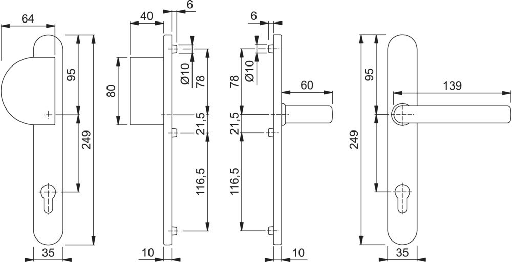 | Form Türgriff (außen): | Griffplatte, gebogen |
