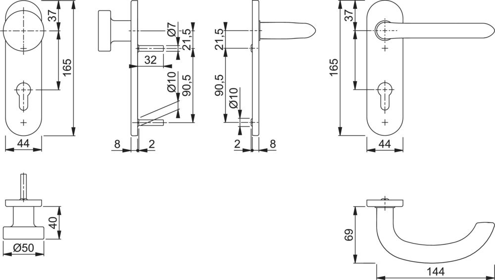 | Durchmesser Türgriff (außen): | 50.00 MMT |
