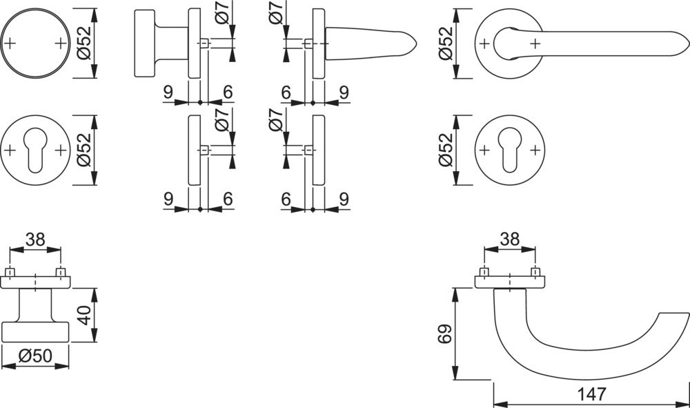 | Durchmesser Türgriff (außen): | 50.00 MMT |