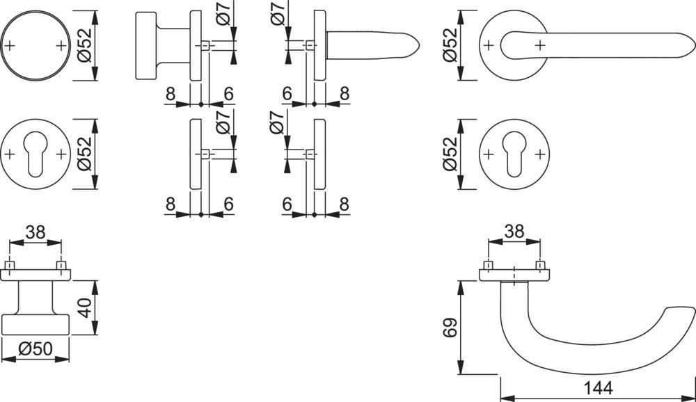 | Höhe Drückerrosette (innen): | 8.00 MMT |