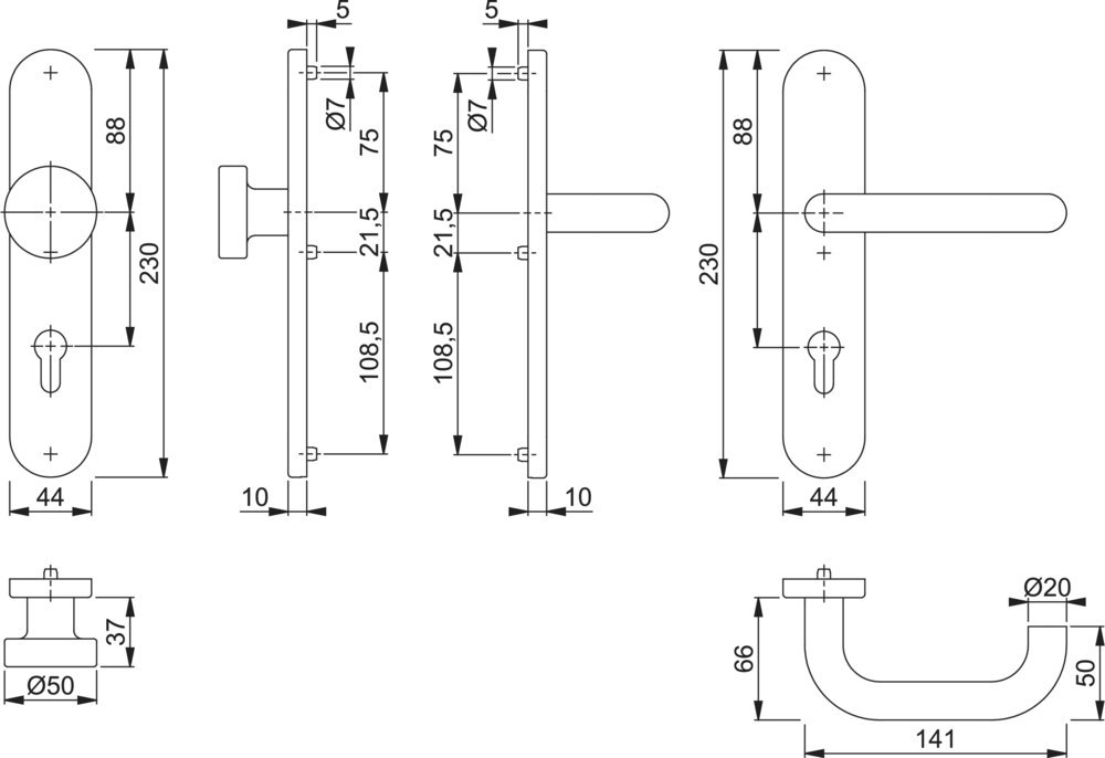 Form Türgriff (außen): Flachknopf