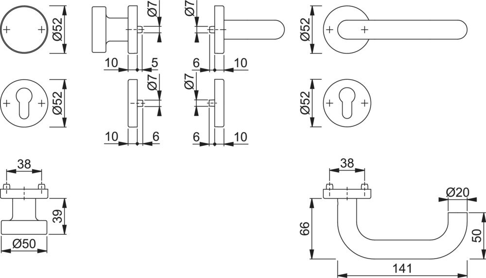 | Durchmesser Türgriff (außen): | 50.00 MMT |