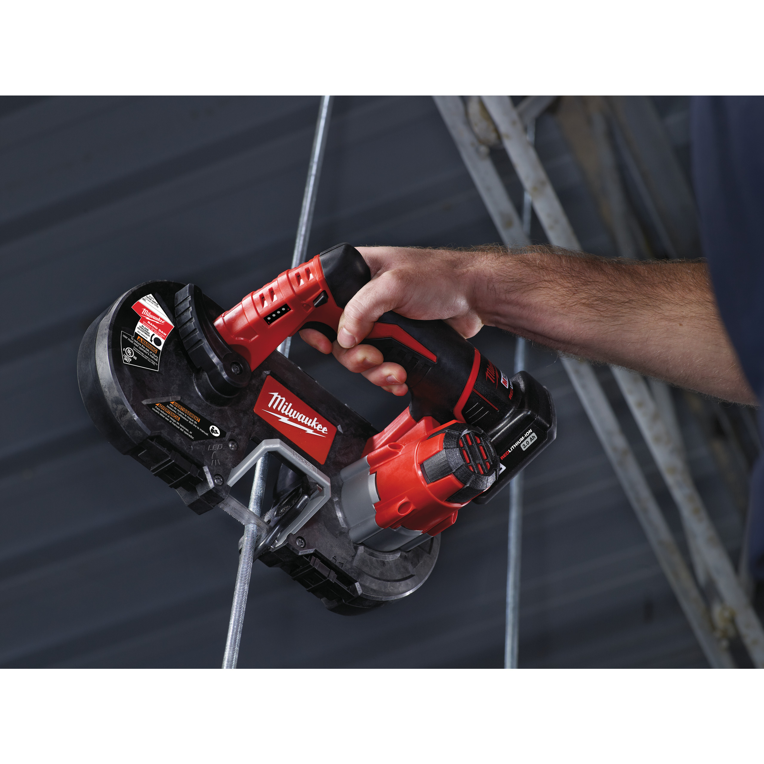 Produktinformationen Kompakte und leichte Akku-Bandsäge für Einhandbedienung und Überkopfarbeiten. Ideal für Arbeiten an schwer zugänglichen Stellen REDLINK™-Elektronik – Überlastschutz in Maschine und Akku sorgt für lange Lebensdauer Vielseitig einsetzbar in verschiedenen Materialien wie Stahl, Edelstahl, Kupfer, Kunststoff und Aluminium Saubere, funken- und gratfreie Schnitte Neuartige Sicherheits-Sägebandabdeckung schützt den Anwender vor Kontakt mit dem Sägeband und erlaubt schnellen und werkzeuglosen Sägebandwechsel Einzelzellenüberwachung für optimierte Standzeit und lange Lebensdauer des Akkus Akku-Ladestandsanzeige und LED-Beleuchtung des Arbeitsbereichs Der REDLITHIUM™-Akku bietet eine perfekt abgestimmte Konstruktion, eine fortschrittliche Elektronik und eine verlustfreie Leistungsabgabe für längere Standzeit und längere Lebensdauer als bei Vorgängermodellen 100 % systemkompatibel mit dem MILWAUKEE®-M12-Produktprogramm Lieferumfang: Elektronik mit stufenlos regelbarer Bandgeschwindigkeit, Saubere, funken- und gratfreie Schnitte, Sägeschuh für exakte Sägebandführung, Vibrationsfreier Lauf für Präzisions-Schnitte, Neuartige Sicherheits-Sägebandabdeckung schützt den Anwender vor Kontakt mit dem Sägeband und erlaubt schnellen und werkzeuglosen Sägebandwechsel, LED Schnittstellenbeleuchtung, Handgriff mit Softgrip-Auflage, Akku-Ladestandsanzeige.