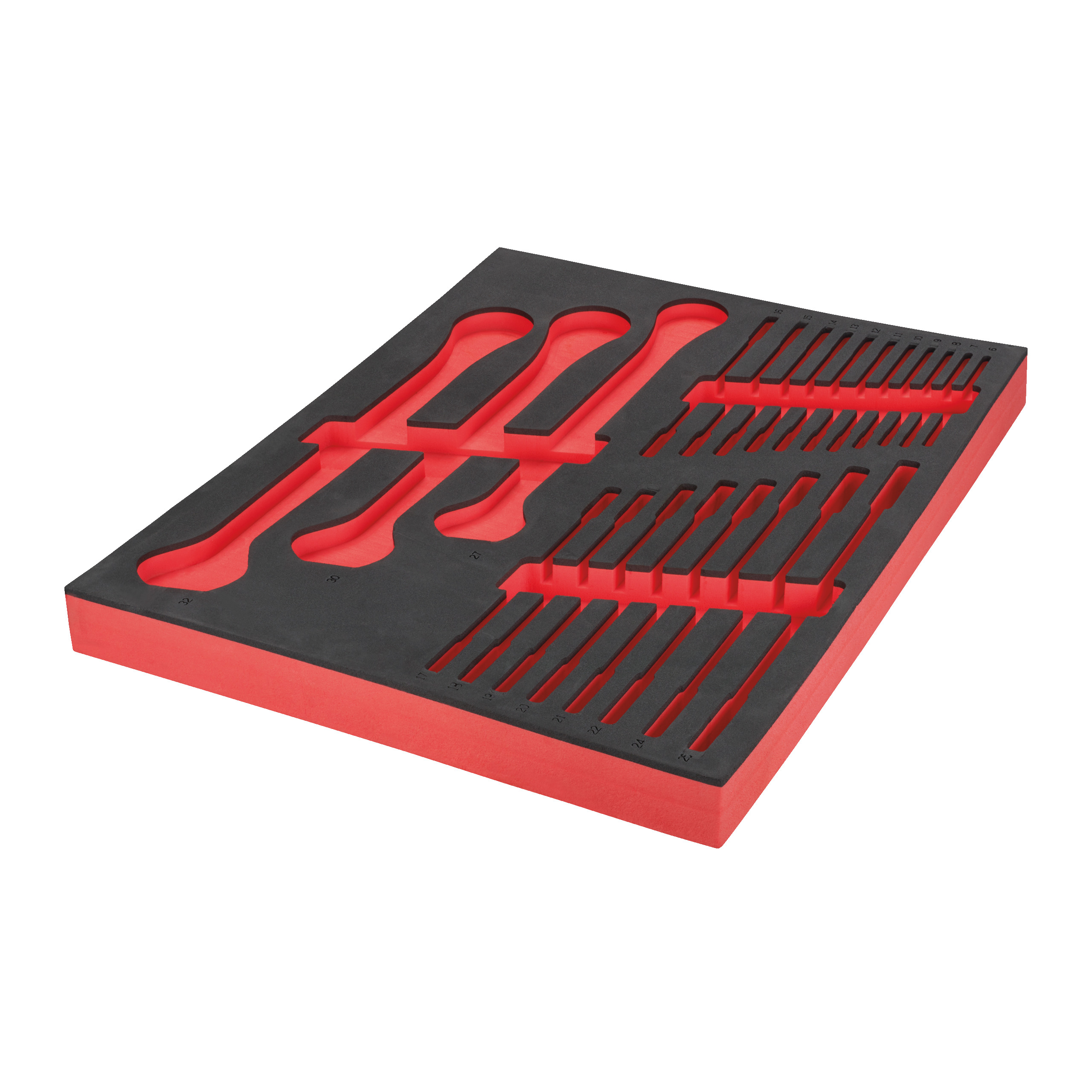 Produktinformationen Strapazierfähige Schaumstoffeinlagen für eine geordnete Aufbewahrung von MILWAUKEE® Werkzeugen und Zubehör Lasergeschnittene Aussparungen für eine präzise Passform