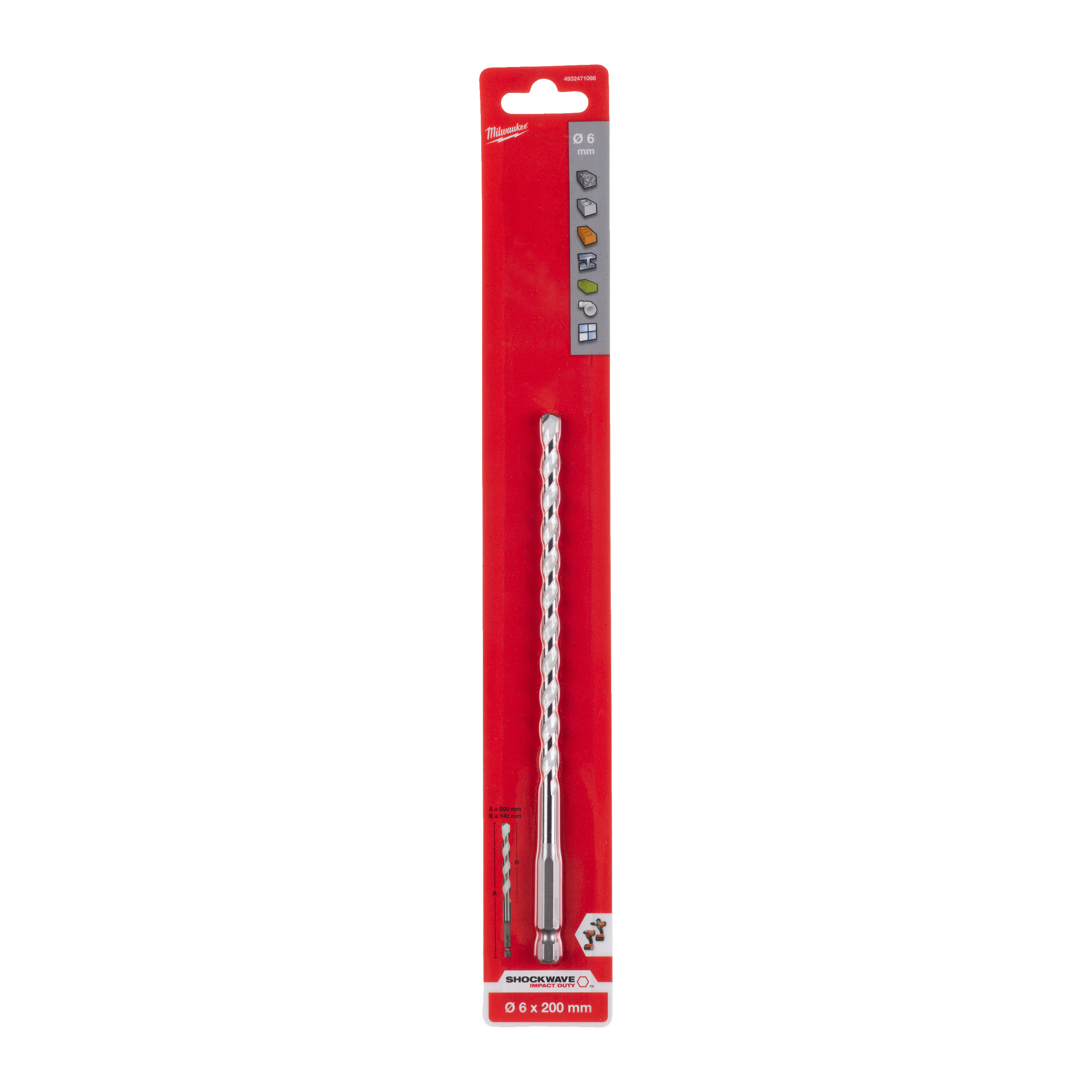 Milwaukee Multimaterial Bohrer 6 x 200 mm SHOCKWAVE 1/4" Hex