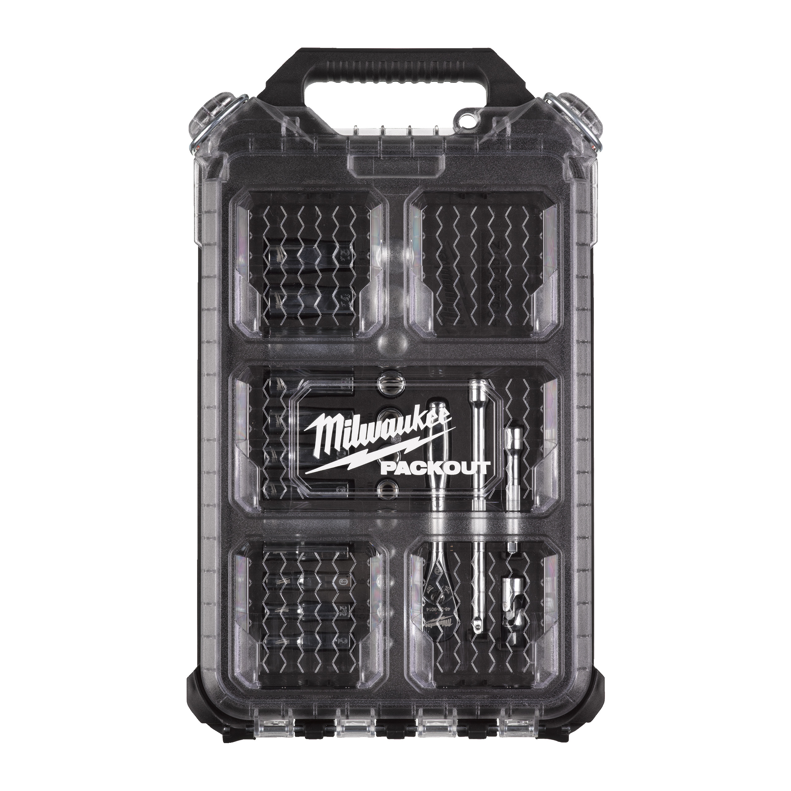 Produktinformationen "Milwaukee Ratschen- und Steckschlüsseleinsatz-Set 28-teilig im PACKOUT Compact-Organiser Slim Steckschlüsseleinsatz Set 1/4" metrisch"