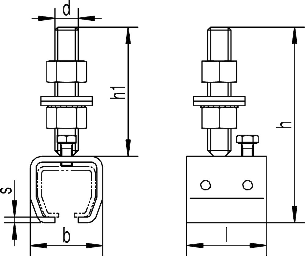 HELM Schiebetor Muffe, Modellnummer: 104, Ausführung: Höhenverstellbar, für Profil-Nr.: 100, Material: stahl, Oberfläche: galvanisch verzinkt, Befestigungsart: Zum Anschrauben, Länge: 40 mm, Breite: 38 mm, Gesamthöhe: 98 mm, Stärke: 3 mm, Gewindedurchmesser: M10, Schraubenlänge: 64 mm, Zusatzinformation: verwendbar mit Wandwinkel 04-W oder 04-WD