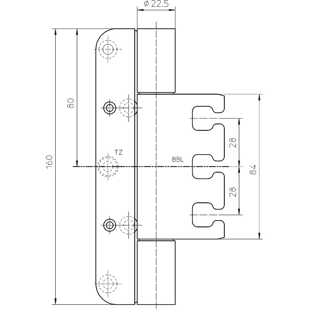 SIMONSWERK, Objekttür-Band, Modell: VARIANT®, Modellnummer: VX 7939/160 FD, Bandkonstruktion: 2-teilig, Material: Edelstahl, Farbton: edelstahl, Oberfläche: matt gebürstet, Lagerung: verdeckt liegende, wartungsfreie, Axial-Radial-Gleitlager, Rollenlänge: 160 mm, Ausführung: mit Aufnahmenut, DIN-Richtung: DIN Links-Rechts, Anwendung: Holzzarge, Stahlzarge, Aluminiumzarge, Anzahl Schraublöcher: 5 St., Befestigungsart Flügelteil: zum Anschrauben, Befestigungsart Rahmenteil: zum Einstecken, Feuerbeständigkeit: Klasse 1, Fräserdurchmesser: 24 mm, Funktionsbereich: Feuerschutz, Rauchschutz, Schallschutz, Breite Flügelteil: 30 mm, Höhe Flügelteil: 160 mm, Breite Rahmenteil: 27,5 mm, Höhe Rahmenteil: 84 mm, Verstellbar: fest, Kopfausbildung: Flachkopf, Korrosionsbeständigkeit: Klasse 5, Materialstärke: 3,5 mm, Rollendurchmesser: 22,5 mm, Schraubendurchmesser: 5 mm, Schraubenlänge: 50 mm, Stiftausführung: Schraubstift, innenliegend, verdrehsicher, Tragkraft pro Flügel (1 x 2 m) bei zwei Bändern: 200 kg, Türwerkstoff: Holz, Stahl, Türausprägung: gefälzt, kombinierbar mit: VX 7512 3D, VX 7511 3D, VX 2511 3D, VX 7505 3D, VX 2505 3D N, VX 7502 3D, VX 2502 3D N, VX 7501 3D, VX 2501 3D N, VX 7521 3D