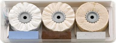 3 Polierpasten: weiß; blau; braun