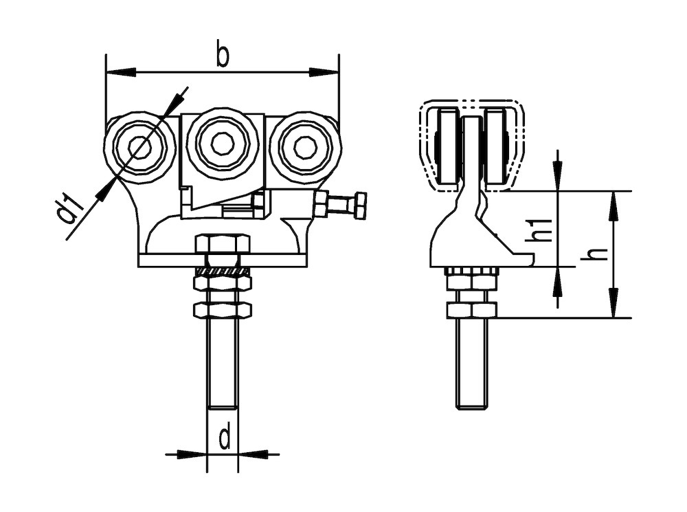HELM Schiebetor Rollapparat, Modellnummer: 592, Ausführung: doppelpaarig, mit Gegendruckrolle, mit Pendelgelenk, Material Rollapparat: stahl, Oberfläche Rollapparat: galvanisch verzinkt, für Profil-Nr.: 500, Befestigungsart: zum Einhängen, Länge Rollapparat: 160 mm, Rollendurchmesser: 48 mm, Gewindedurchmesser: M20, Gewindelänge: 90 mm, Verstellbarkeit: Höhenverstellbar