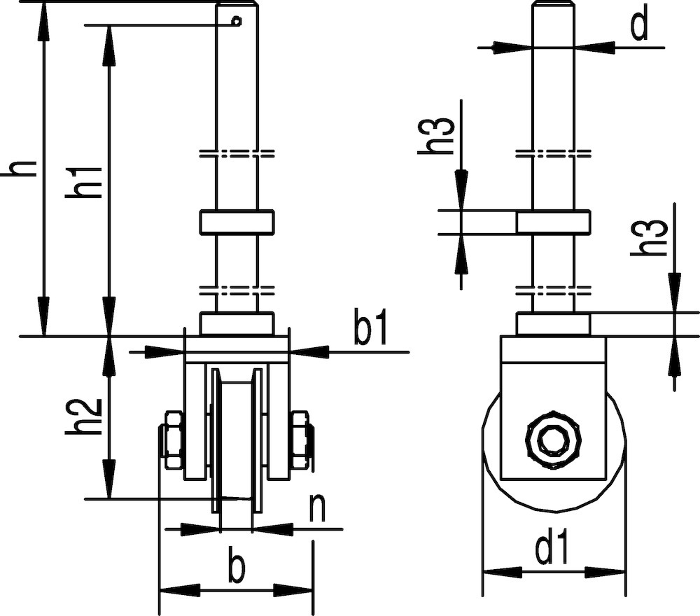 HELM Falttor Rolle, Ausführung: mit Rundstange, mit Bügel, Modellnummer: 859 S, Anwendung: unten laufend, Lagerung: mit Kugellager, Material Rolle: stahl, Oberfläche Rolle: blau chromatiert, Befestigungsart: zum Anschweißen, Rollendurchmesser: 100 mm, Tragkraft max.: 500