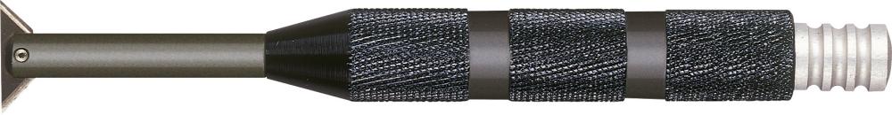 Hinweis: Durch Drücken des hinteren Knopfes schwenkt die Klinge in den Schaft, und das Werkzeug kann durch die Bohrung geführt werden (siehe Skizze). Die Klingen schneiden beidseitig.