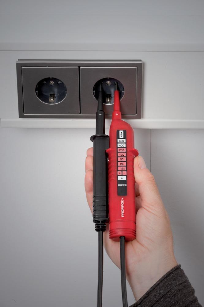 • Zum Prüfen von Gleich- und Wechselspannungen sowie für Durchgangs-, Phasen- und Polaritätsprüfungen und Drehfelderkennung