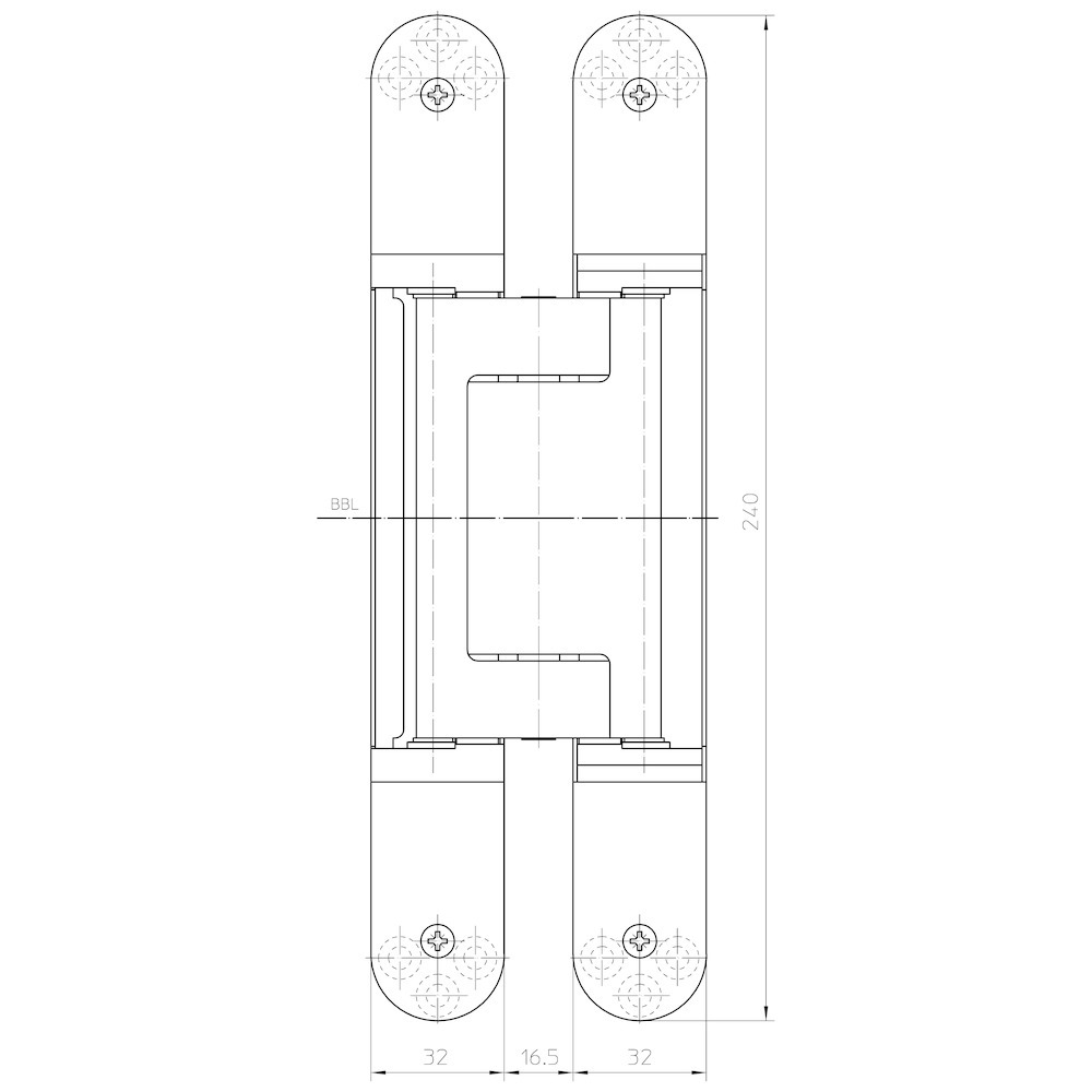 SIMONSWERK, Objekttür-Türband, Modell: TECTUS®, Modellnummer: TE 640 3D, Bandkonstruktion: 2-teilig, Material: Stahl, Farbton: neusilberfarbig, Oberfläche: beschichtet, Ausführung: verdeckt liegend, Öffnungswinkel: 180 °, DIN-Richtung: DIN Links-Rechts, Lagerung: Gleitlager, wartungsfreie, Anwendung: Holzzarge, Stahlzarge, Aluminiumzarge, Befestigungsart Flügelteil: zum Anschrauben, Breite Flügelteil: 32 mm, Befestigungsart Rahmenteil: zum Anschrauben, Breite Rahmenteil: 32 mm, Feuerbeständigkeit: Klasse 1, Fräserdurchmesser: 24 mm, Funktionsbereich: Feuerschutz, Rauchschutz, Schallschutz, Einbruchhemmung,Zusatzinformation : Bandgehäuse seitlich geschlossen, Gesamtlänge: 240 mm, Gesamtbreite: 80,5 mm, Andruckverstellung min.: -1 mm, Andruckverstellung max.: 1 mm, Höhenverstellung min.: -3 mm, Höhenverstellung max.: 3 mm, Seitenverstellung min.: -3 mm, Seitenverstellung max.: 3 mm, Länge Flügelteil: 240 mm, Länge Rahmenteil: 240 mm, Tragkraft pro Flügel (1 x 2 m) bei zwei Bändern: 200 kg, Türwerkstoff: Holz, Stahl, Türausprägung: stumpfe Türen, Verstellbar: 3 Dimensional, kombinierbar mit: TE 640 3D BW/20, TE 640 3D BW/16, TE 640 3D FZ, TE 640 3D ST, TE 640 3D SZ