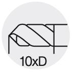 Vorteil: Spezialbohrer zum Bohren extrem tiefer Löcher, bei schlechter Spanabfuhr und mangelhafter Kühlung. Für Bohrungen bis 10 x D.