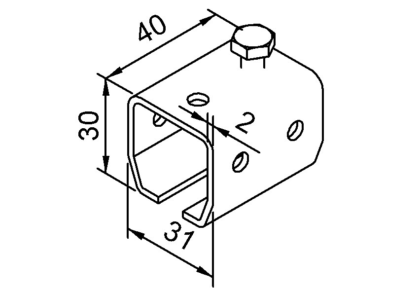 HELM Schiebetor Übersteckmuffe, Modellnummer: 45/04, Ausführung: mit oberer Konterschraube, für Profil-Nr.: 45, Material: stahl, Oberfläche: blank, Befestigungsart: Zum Aufstecken, Länge: 40 mm, Breite: 31 mm, Höhe: 40 mm, Stärke: 2 mm, Zusatzinformation: verwendbar bei Schweißkonstruktionen