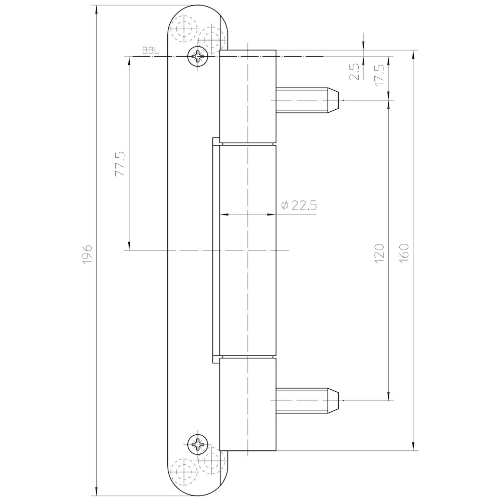 SIMONSWERK, Objekttür-Band, Modell: VARIANT®, Modellnummer: VN 3737/160 Compact, Bandkonstruktion: 2-teilig, Ausführung: als Umrüstband, DIN-Richtung: DIN Links-Rechts, Material: Stahl, Farbton: verchromt/F1, Oberfläche: matt, Kopfausbildung: Flachkopf, Lagerung: verdeckt liegende, wartungsfreie, Axial-Radial-Gleitlager, Rollenlänge: 160 mm, Ergänzung: für Blindeinnietmutter, für Aufnahmeelement VARIANT VS, Verstellbar: 3 Dimensional, Rollendurchmesser: 22,5 mm, Materialstärke: 3,5 mm, Stiftdurchmesser: 10 mm, Tragkraft pro Flügel (1 x 2 m) bei zwei Bändern: 160 kg, Seitenverstellung min.: -3 mm, Seitenverstellung max.: 3 mm, Höhenverstellung min.: -3 mm, Höhenverstellung max.: 3 mm, Andruckverstellung min.: -1 mm, Andruckverstellung max.: 1 mm, Befestigungsart Flügelteil: zum Anschrauben, Höhe Flügelteil: 196 mm, Befestigungsart Rahmenteil: zum Eindrehen, Anwendung: Futterzarge, Stahlarge, Fräserdurchmesser: 24 mm, Befestigungsabstand Rahmenteil: 120 mm, Stiftausführung: innenliegend, verdrehsicher, Schraubstift, Schraubendurchmesser: 5 mm, Schraubenlänge: 50 mm, Türwerkstoff: Holz, Stahl, Funktionsbereich: Feuerschutz, Rauchschutz, Korrosionsbeständigkeit: Klasse 3, Türausprägung: gefälzte Türen, kombinierbar mit: Blindeinnietmutter M 10, VS 4600/7, VS 4600/9