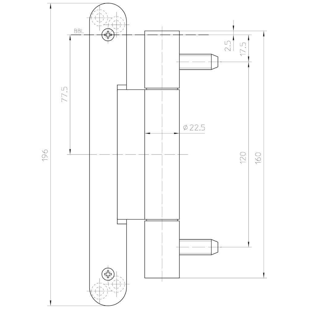 SIMONSWERK, Objekttür-Band, Modell: VARIANT®, Modellnummer: VN 3747/160 Compact, Bandkonstruktion: 2-teilig, Ausführung: als Umrüstband, DIN-Richtung: DIN Links-Rechts, Material: Edelstahl, Farbton: edelstahl, Oberfläche: matt gebürstet, Kopfausbildung: Flachkopf, Lagerung: verdeckt liegende, wartungsfreie, Axial-Radial-Gleitlager, Rollenlänge: 160 mm, Ergänzung: für Blindeinnietmutter, für Blindeinnietmutter, Verstellbar: 3 Dimensional, Rollendurchmesser: 22,5 mm, Materialstärke: 3,5 mm, Stiftdurchmesser: 10 mm, Tragkraft pro Flügel (1 x 2 m) bei zwei Bändern: 160 kg, Seitenverstellung min.: -3 mm, Seitenverstellung max.: 3 mm, Höhenverstellung min.: -3 mm, Höhenverstellung max.: 3 mm, Andruckverstellung min.: -1 mm, Andruckverstellung max.: 1 mm, Befestigungsart Flügelteil: zum Anschrauben, Höhe Flügelteil: 196 mm, Befestigungsart Rahmenteil: zum Eindrehen, Anwendung: Stahlzarge, Fräserdurchmesser: 24 mm, Befestigungsabstand Rahmenteil: 120 mm, Stiftausführung: innenliegend, verdrehsicher, Schraubstift, Schraubendurchmesser: 5 mm, Schraubenlänge: 50 mm, Türwerkstoff: Holz, Stahl, Funktionsbereich: Feuerschutz, Rauchschutz, Feuerbeständigkeit: Klasse 1, Korrosionsbeständigkeit: Klasse 5, Türausprägung: stumpfe Türen, kombinierbar mit: Blindeinnietmutter M 10