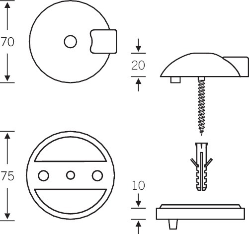 FSB Objekttür Unterlegplatte, Befestigungstechnik: mit Verdrehsicherung, Modellnummer: 38 3884, Ausführung: für Bodentürstopper, Material: aluminium, Farbe: schwarz, Farbton: tiefschwarz, Oberfläche: farbig kunststoffbeschichtet, Durchmesser: 75 mm, Höhe: 10 mm