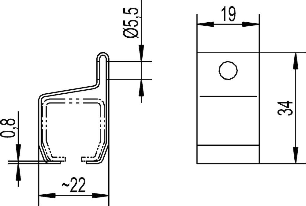 HELM Schiebetor Wandbefestigungsmuffe, Modellnummer: 13/01, Ausführung: für Laufschiene, für Profil-Nr.: 13, Befestigungsart: Zum Anschrauben, Breite: 22 mm, Höhe: 34 mm, Länge: 19 mm, Material: stahl, Oberfläche: galvanisch verzinkt